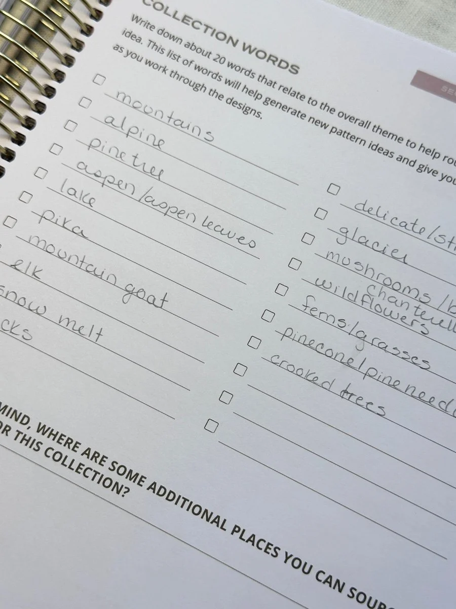 Week one included 13 video lessons, workbook exercises, and a live call when the module opened. By the end of it, the overall direction of the collection feels much stronger than when I started. The next Module will focus on creating the artwork itself. I anticipate that I will be drawing, painting, and refining the motifs that will eventually make it into my patterns. This Module is reimagined from the previous course, so I’m looking forward to seeing what it entails.