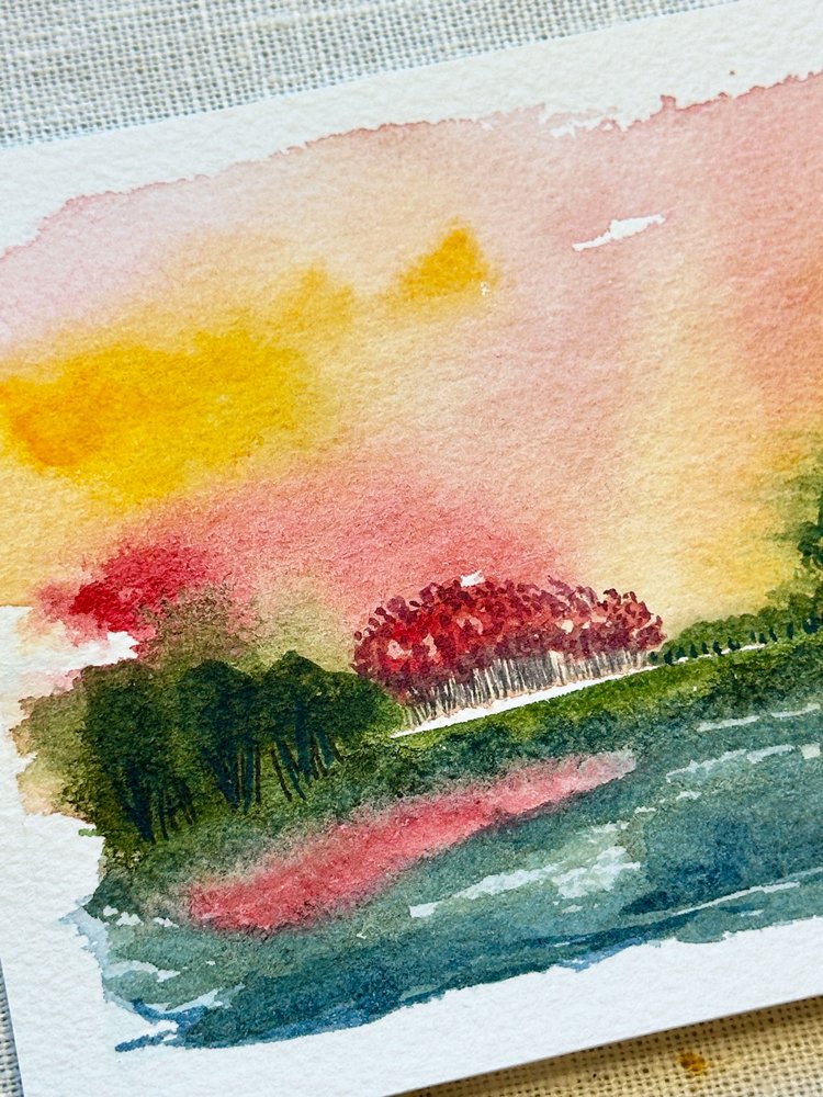 This painting brings to mind warm summer evenings, where nature's colors can awe you into silence, where a photo could never quite capture the colors or the glow of the fading sun.